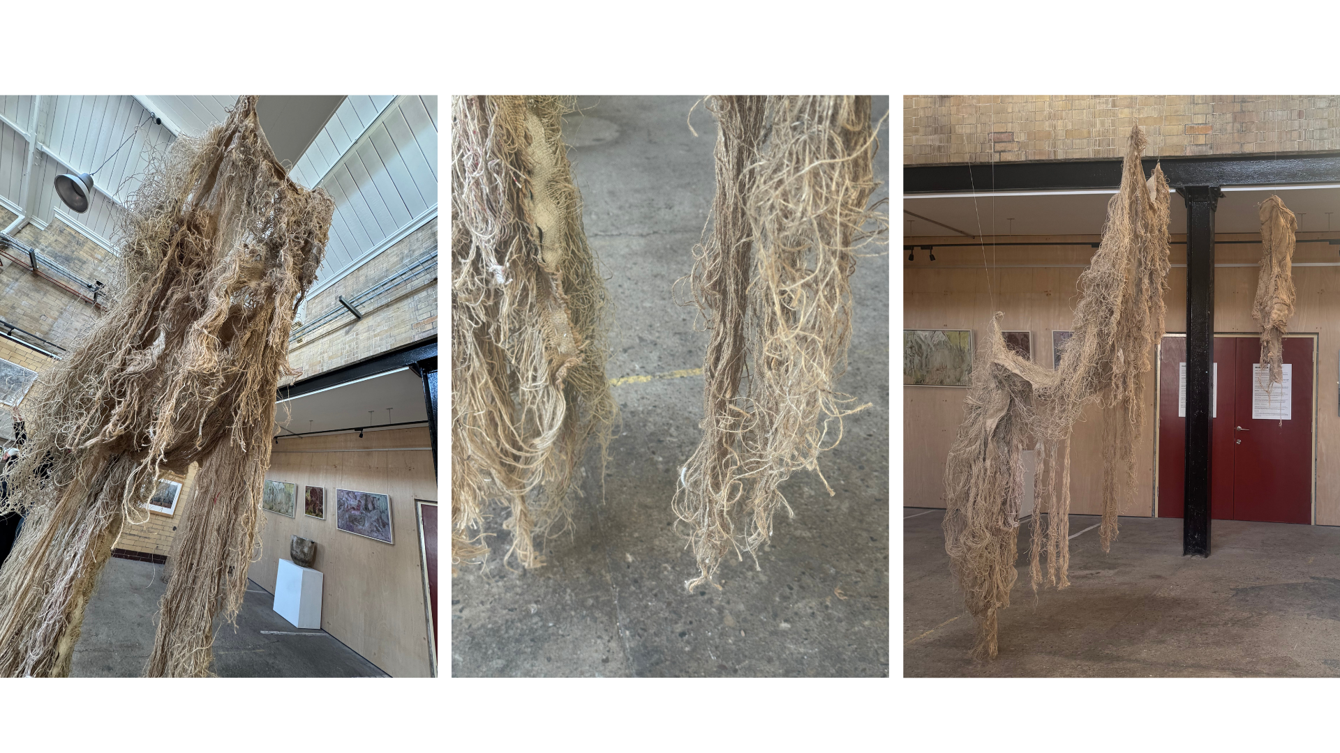 Textile artist Alice Boot captivated viewers with her fibre-based works, which evoke coastal landscapes from her childhood. Suspended in the building’s lofty industrial space, her fibrous structures seemed to emerge organically from the architecture itself, creating a powerful dialogue between material and place.